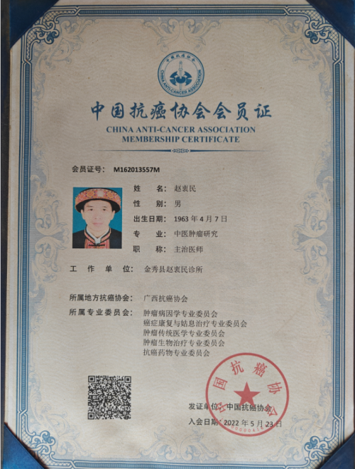 2024年成为广西民族医药协会肿瘤防治专业委员会会员