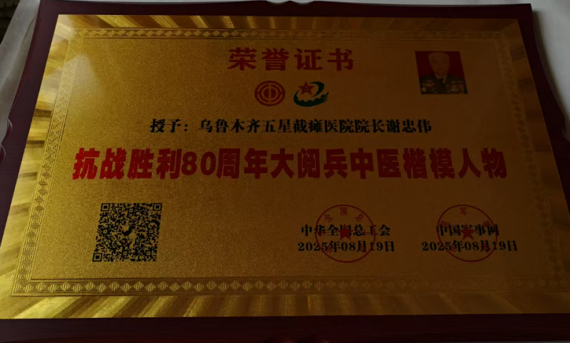 在治疗截瘫方面于1986年获军级科技进步四等奖;1997年获粤、港发明一等奖;1998年荣获美国第二届“爱迪生”世界发明博览会国际最高金奖,特授予“对人类贡献”荣誉称号;1998年5月获得美国洛杉矶第四届世界传统医学大会国际优秀成果奖;1998年获第十一届全国发明博览会银牌奖;1998年荣获新疆科技成果金杯奖;1998年10月荣获香港国际中医药及中医结合学术交流大会98紫荆花医学金奖;1999年1月荣获加拿大欧亚传统医学新进展学术金奖;1999年5月荣获瑞士日内瓦27届世界发明博览会银牌奖;1999年底荣获“20世纪杰出医学家”金奖。应邀参加北京2000年中华民族大团结各界代表新年座谈会。2001年香港国际中医药传统医学新产品博览会新产品金奖;2002年4月6日被人民日报市场信息中心授予“中华优秀发明者”荣誉称号。2003年中国医药卫生发展战略高层论坛获得年度特殊贡献奖;2004年5月荣获“华夏医魂”全国百名优秀医院院长奖;中华名医世纪高新金杯奖一等奖;