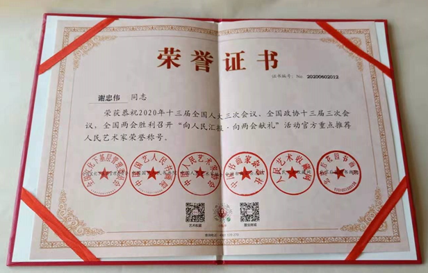 2006年6月18日被评为“中华人民共和国有突出贡献的专家”,编号为008609910908。2007年12月评为“中国国际权威专家”。2008年5月31日,“健康中国---全国中医药文化建设高层研讨会暨中华医学最具创新成果颁奖典礼”在全国政协礼堂隆重举行,谢忠伟同志作为贵宾代表光荣的出席了本次盛会,荣获学分证书,被授予国家级继续教育学会6分,并荣获“杏林奇葩”荣誉勋章;“大医精诚”荣誉牌匾,“疑难杂症探索杯”,“中华医学专家最具创新成果”光荣册,个人简历及论文成果入编《大医精诚》---共和国杰出医学专家风采录。2008年10月应邀出席“感动中国2008全国杰出贡献爱国人士国庆座谈会”,被授予“全国百名杰出贡献爱国人士”称号。2009年5月被中国文化管理学会文化经济专业委员会及中国文化管理学会艺术管理专业委员会授予“中国百名优秀代表人物世纪专版”荣誉金奖。2009年荣获决策者军旅人物专刊部《军魂 中华英雄儿女》。2009年3月荣获“21世纪国际知名医家金库才华奖”。2010年6月全国行业纪律督察委员会授予“2010叱咤中国医学行业十大风云人物”,2010年6月30日中国信息管理协会,中国科技财富杂志社授予“影响中国行业楷模荣誉证书奖牌”,2010年10月19日全国书画家职称认定委员会授子谢忠伟“国家特级书法师”。2010年12月6日全国高健委名医名院发展促进专业委员会国务院九部委联合机构等单位联合授予名中医专家委员会“首席专家”。2011年元月7日,颁发“腾飞中国——2010年最具影响力的年度十佳人物”,2011年中国共产党成立90周年,评为“共和国杰出共产党人”,并授予“一级勋章荣誉”称号,香港国际中医人才研究院,香港现代医院管理协会、中外名人风采杂志编辑部联合评为“2011年世界华人知名医家卓越成就金奖”。2011年5月全国爱国者协会授予“盛世中华公益人物”,2011年6月中国医学国际发展联合会授予“资深首席专家(终身制)”。2012年2月中华名医协会副会长,2012年12月中华名医协会特色诊疗专家委员会授予“名誉会长”。2012年2月“中华当代百强名医”,2012年12月中国杰出爱国模范人物,2013年中国当代书法大师,中国书画研究院院士,2013年中国科学家协会终身副理事长,国际名医联盟网终身国际专家。2014年5月中华医学国际发展联合会获得中国梦健康万里行健康大使称号。2014年5月,全国劳动英模称号。2014年8月祖国杂志社评为百佳军旅英雄,并为本书荣誉主编。2014年9月中华医学国际发展联合会获得中国梦,国医魂,中国好医生称号,2014年9月第十一届科学家论坛评为优秀论文一等奖,2014年10月新中国建设功勋人物,2014年9月增补为中国科学家论坛理事会会员(任期三年)。2014年度中国科技创业突出贡献单位。2015年荣获“共和国文艺爱国贡献奖”“世界文艺贡献奖”“中国军魂英雄人物称号”。2015年7月北京国际中医药研究院聘任资深院士。2015年8月中国诗书画出版社授子“一代宗师”。2015年9月中国国家诗书画院评为“终身常务副院长”同时授予“荣誉院长”,2015年9月中华医学国际发展联合会评为“中国好医生”。2015年11月评为“北京故宫博物院最具有收藏和影响力4大艺术家”。2015年12月世界文化名人协会评为“世界艺术创作金奖·世界杰出文化圣贤”。2016年1月1日中华民族复兴联合会聘为“终身名誉会长”。2023年8月被授予“中国医学楷模贡献人物”2023年10月评为“中国药学终身成就奖”。2024年3月被中医诊疗行业服务资质证书为国家一级。2024年5月,授予全国五一劳动奖章。2024年6月特邀请担任卫生协会首席会长。2024年8月作品《舞》《虎》被法国巴黎国际奥运文化交流展收藏,荣获奥林匹克艺术贡献奖。2024年8月被全国首批非遗大国工匠组委会授予“全国首批非遗大国工匠”荣誉称号。2025年北京机场展播中国文化艺术代言人。2025年谢忠伟先进工作者白求恩奖章获得者。2025年8月,中国中医科学研究院授予“新时代国医大师”荣誉。中华全国总工会授予“抗战胜利80周年大阅兵中医楷模人物。