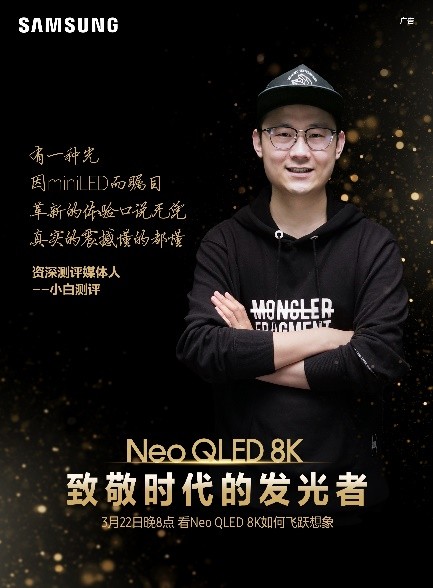 从三星发布的一系列官方海报中,我们也能看出对Neo QLED 8K电视的信心与期待——“致敬时代的发光者”,当这些蕴含着无限希望的词汇与摄影师、游戏博主、科技博主、设计师等业界大咖共同出现的时候,相信你和我一样期待着Neo QLED 8K电视在中国的上市发布。就像叉小包讲到的,“当生活的日常变为沉浸式的时光,方觉:未来仿佛已经到来”。80/90后们享受着科技爆炸式发展带来的红利,他们眼中,未来或许就像Neo QLED 8K所绽放的画面一般,带给每个人沉浸的想象与享受。