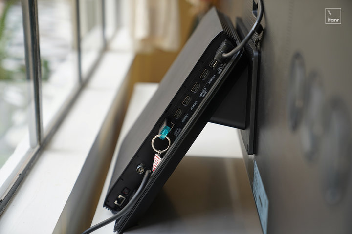 除此之外,底座采用了中置金属底座,且向后弯折,使得正面看上去底座似乎与屏幕没有连接,更加凸显无界全面屏的特点。电视的所有元素都经过了精心重组,例如电视背面的输入模块被放在了支架侧面,这样用户就可以轻松地连接和整理不同线缆。既保留集线器原本的“连接”本质,又消除了周围环境中不必要的杂乱元素,使家居环境更美观。