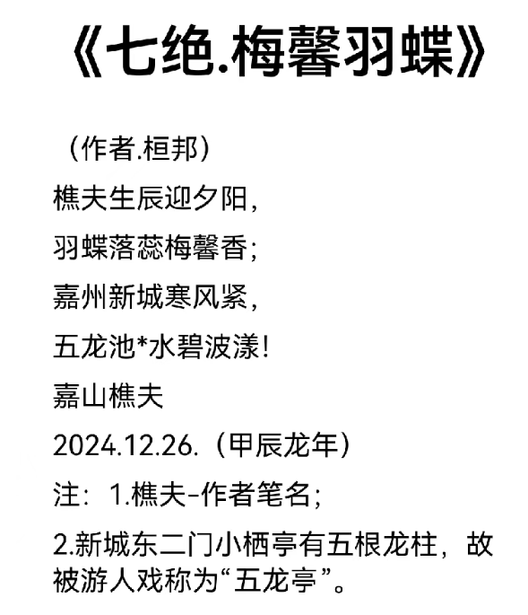 2024年作品《卜算子、春水》、《长相思、枯林》、《钗头凤、沫水流》等15首古体诗词被智慧国潮艺术研究院特刊收录。