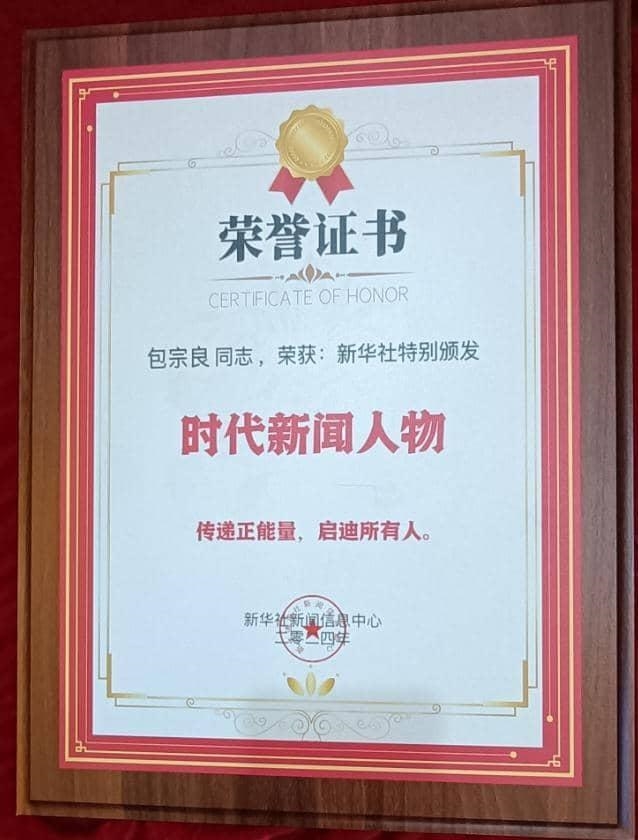 2023年8月,CCTV中视新闻,时代楷模先锋人物栏目组授予(时代楷模 先锋人物)。