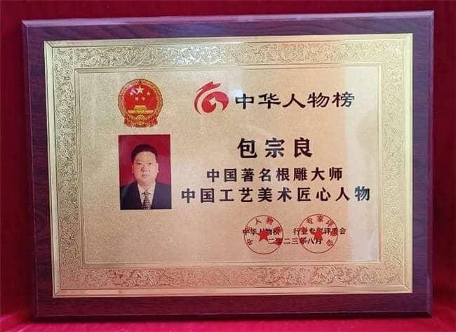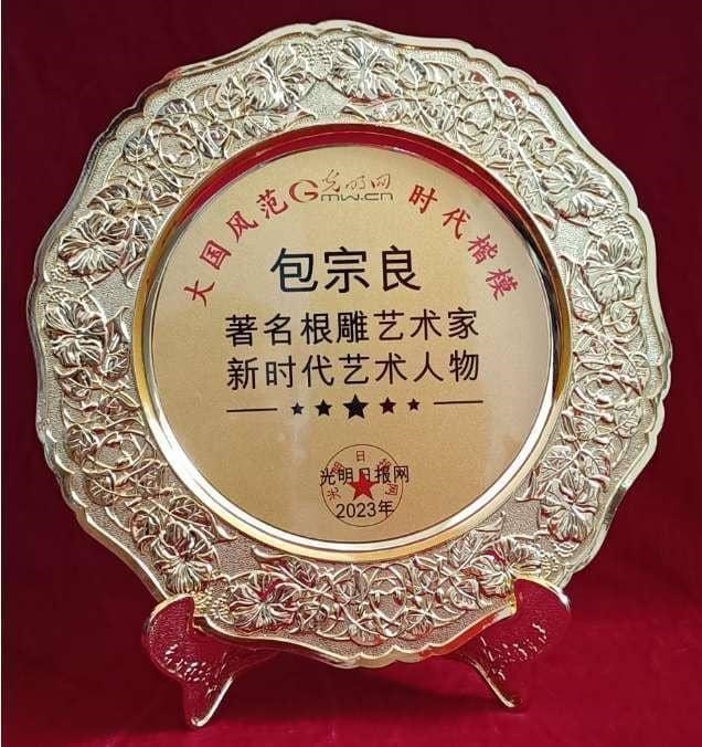 2023年8月,央媒头条网,新时代先锋人物组委会授予(中国著名根雕大师)。