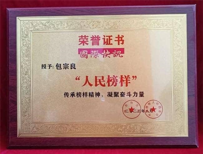 2023年8月,国际快讯网,中国榜样人物组委会授予(人民榜样)。