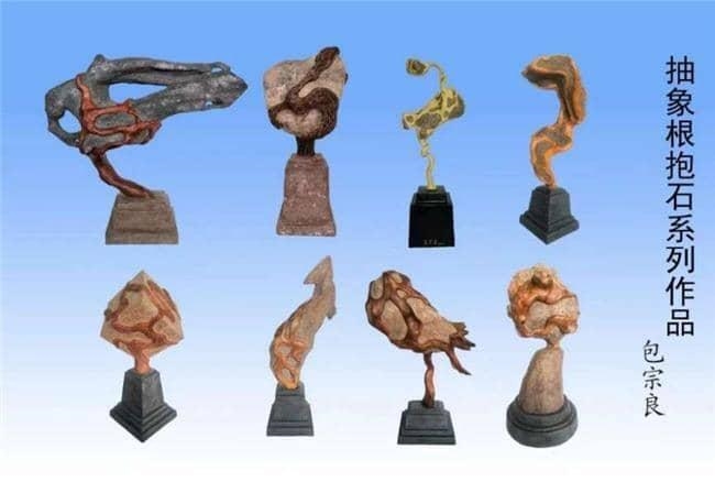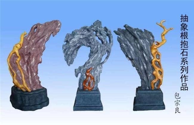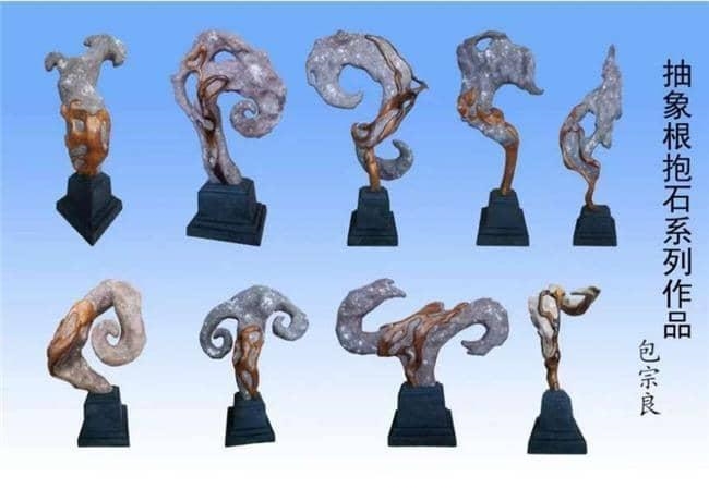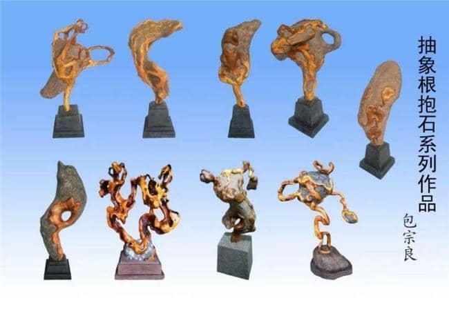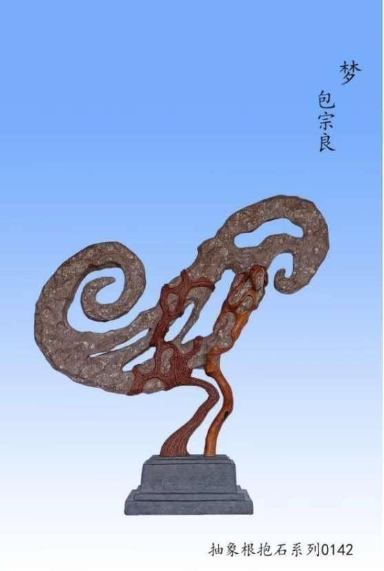 独创抽象根抱石作品风格已经申请了国家发明专利,以及成为中华人民共和国国礼艺术品。