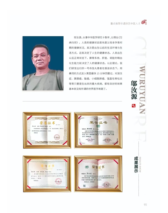 除了深耕中医临床,邬汝源更以跨界思维拓展传统医学的应用边界。凭借纳米材料、负氧离子海绵体等科研背景,他将航天工程中的环境优化理念融入中医“未病先防”思想,提出通过改善生活环境、调节脏腑养护氛围,从源头降低疑难杂症发生风险,实现了中医理论与现代科技的创新融合。学术研究方面,他撰写《肿瘤癌转移说》《亚健康——心脑血管病、肿瘤的前奏》等多篇深度论文,系统阐述肿瘤转移机制与亚健康的中医调理路径,相关研究成果曾获中国科学家论坛优秀论文一等奖,为中医在疑难杂症领域的学术发展提供了重要参考。