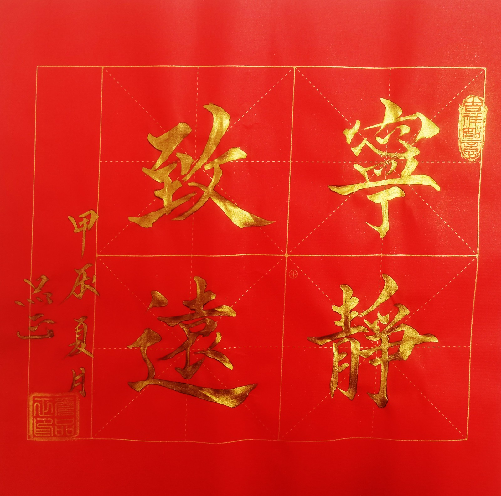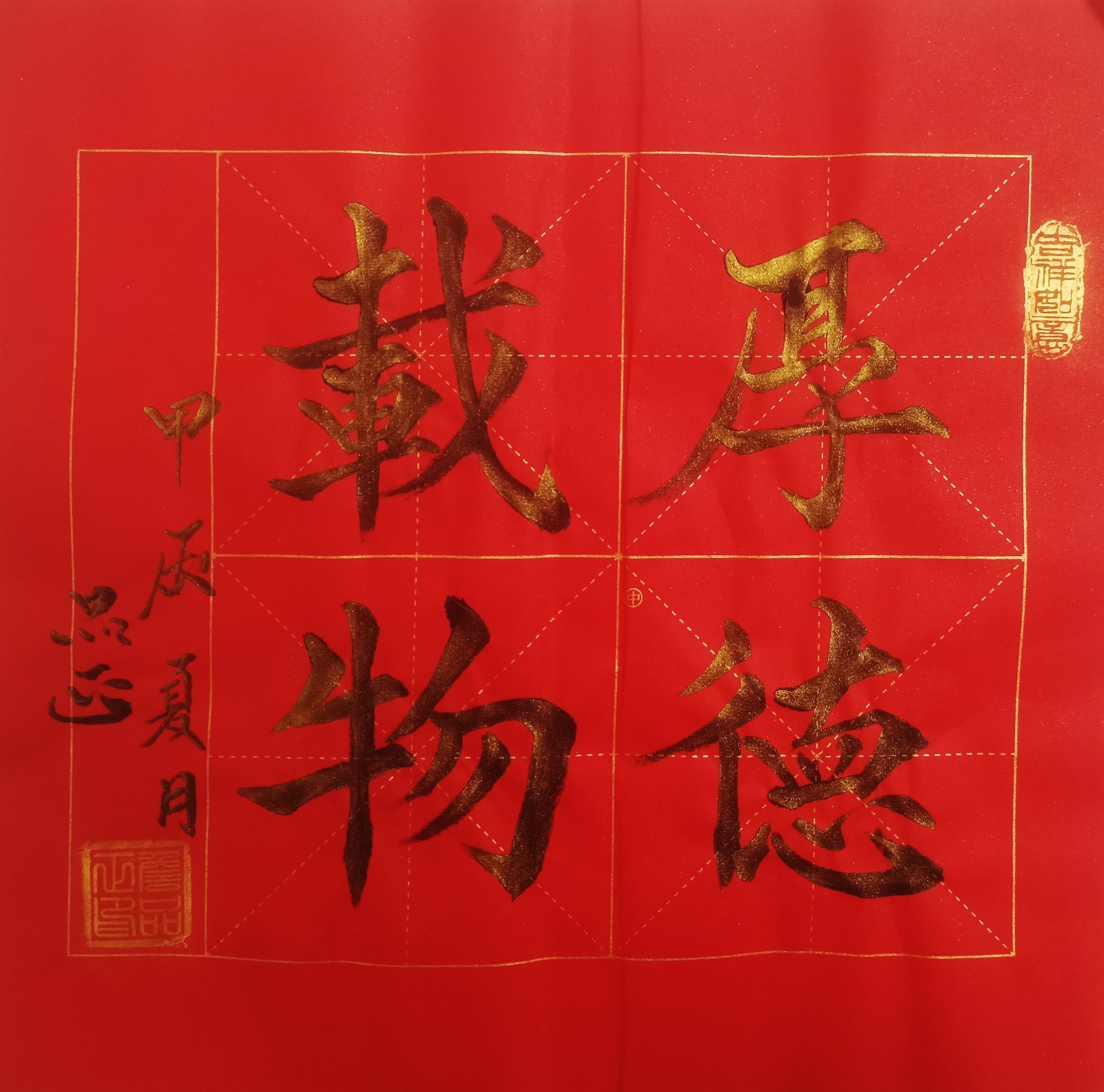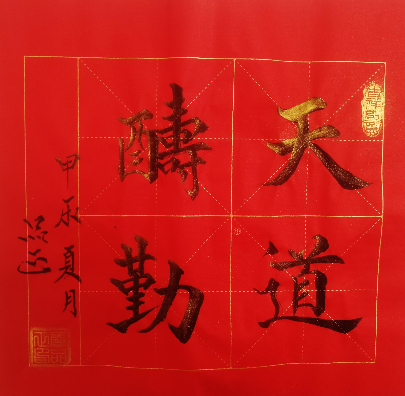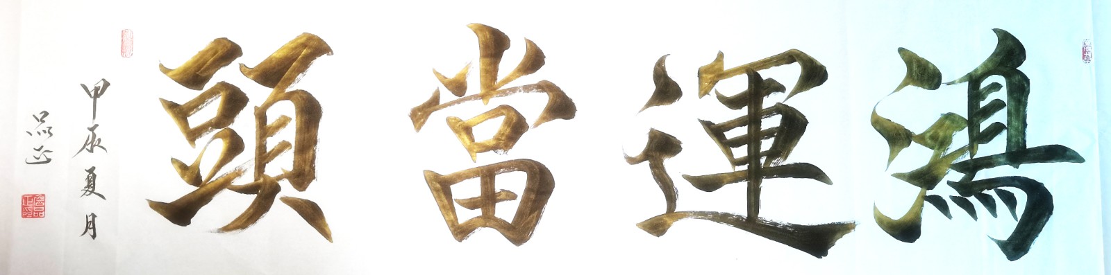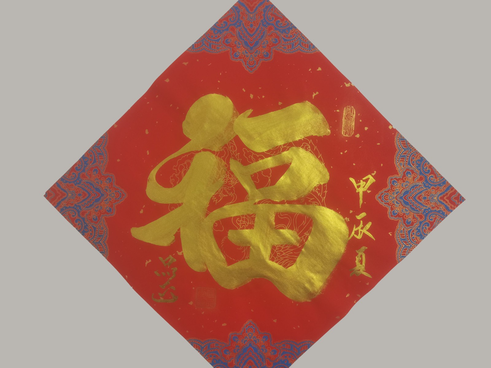 如书法作品中的《龙》字极具视觉冲击力。从起源看,“龙”字源于远古对龙图腾的崇拜,它是多种动物形象融合的产物,象征着强大与力量。在传统文化里,龙是吉祥、权威的象征,代表着风调雨顺、五谷丰登,也寓意着杰出、不凡,此作品中“龙”字以豪放洒脱的笔法书写,墨色浓重,富有张力。其字体大气磅礴,笔画间尽显龙的腾跃之姿,威严而不失灵动。周围纹饰与金粉点缀,更添华贵。这“龙”字,既是传统文化的璀璨结晶,又以独特字体彰显着龙的无上神韵,令人心生敬畏。