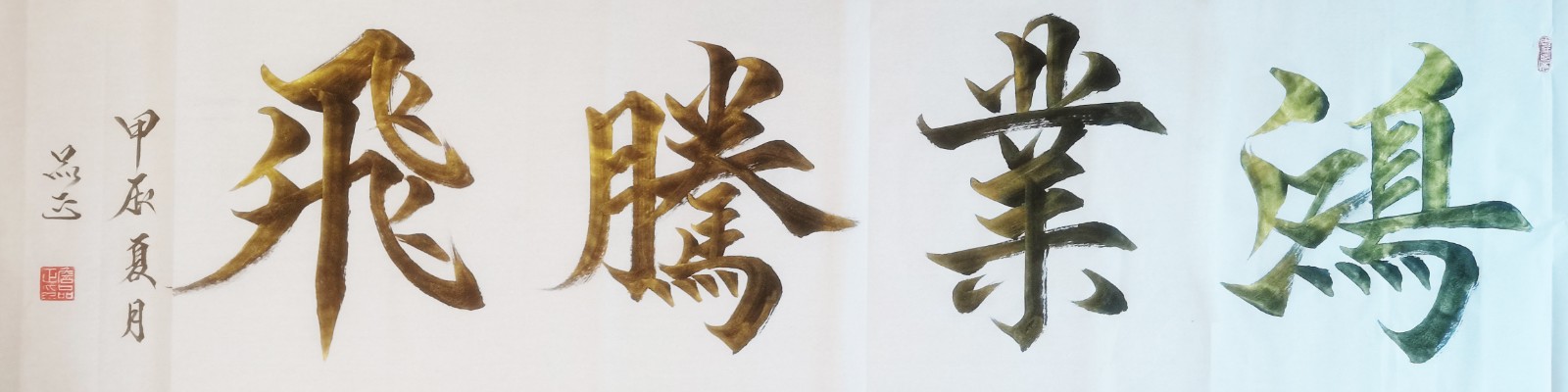 詹品正的作品往往能够传递出真挚的情感与独特的个性。无论是《雅趣》中的闲适洒脱,还是《海纳百川》中的博大胸怀,亦或是《宝地生金》中的吉祥祝愿,都让人感受到作者创作时的情感投入与精神境界。这种“以情入书、书以载情”的创作方式,使他的作品具有打动人心的艺术力量。