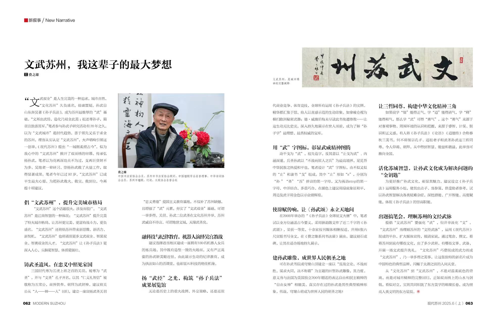 费之雄以九旬高龄仍笔耕不辍,其“时有所进、日有所为、年有所获、生有所成”的自勉,正是对“文武苏州”精神的最佳诠释——这座城,正如他的书法,既有《孙子兵法》的苍劲风骨,又有江南文人的雅致气韵,在文墨、园景与剑影的交织中,书写着刚柔并济的东方传奇。