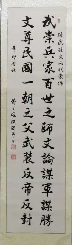 书法创作中的兵法隐喻:在《费之雄系列书法展》中,他自撰《明四家》《四君子·四才子》等组诗,以刚劲的笔触展现文人风骨;同时创作《孙武颂》并获全球征文大赛一等奖,用骈韵散文诠释兵学智慧,实现“文以载道,武以立身”的艺术表达。