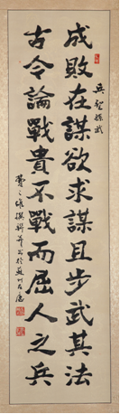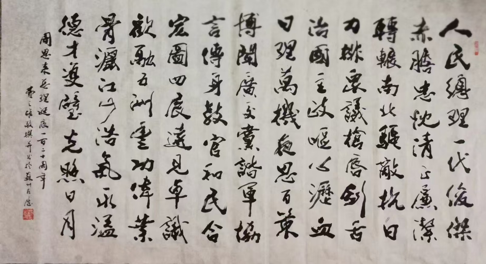 楹联艺术中的哲学对话:他为孔子撰写“至圣先师,礼易六经成教范;儒宗大哲,泽恩万世育良才。”为孙武题写:“成败在谋,欲求谋且效武其法;古今论战,贵不战而屈人之兵。”通过楹联这一传统艺术形式,实现儒、道、兵三家思想的跨时空对话。