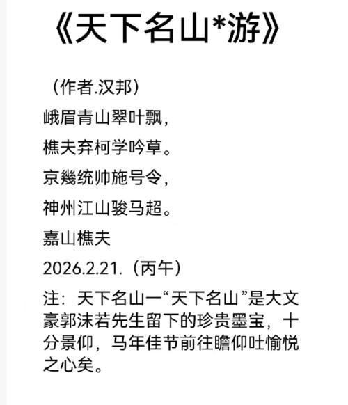 春潮启新程,盛会聚民心。在全国两会隆重召开之际,著名艺术家龚团邦以笔墨为媒、以匠心铸魂,精心创作系列精品佳作,向两会献上诚挚的艺术献礼。作为深耕艺术领域、坚守文化初心的创作者,龚团邦始终以艺术传递时代精神,以作品彰显文化自信,其创作既承传统文脉之厚,又融时代气象之新,字里行间、丹青之中饱含对国家发展、民族复兴的美好祝愿,用艺术力量为新时代高歌、为新征程赋能。