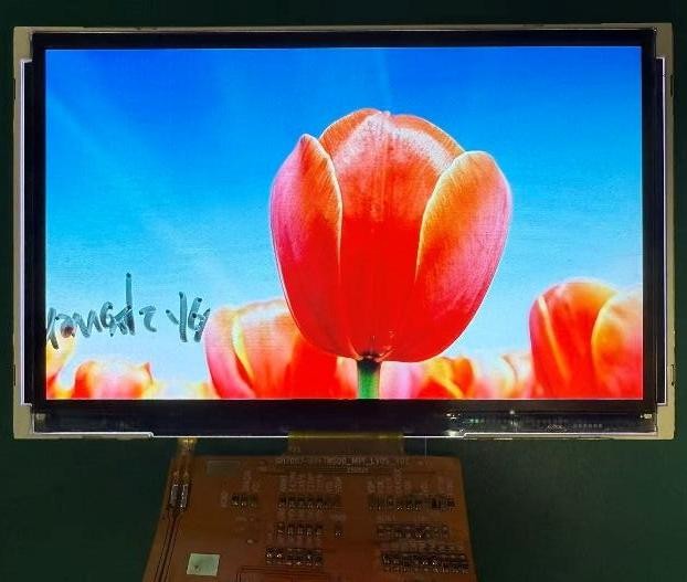 下图是深圳市斌瑶科技有限公司定制宽温/广色域1024RGBx600的5寸液晶面板做的样机图片。通过用RAM M0+系列MCU的SPI接口输出320RGBx240分辨率图像,通过GH7007-01 SCALER UP到1024RGBx600,图像鲜艳细腻,过度自然。