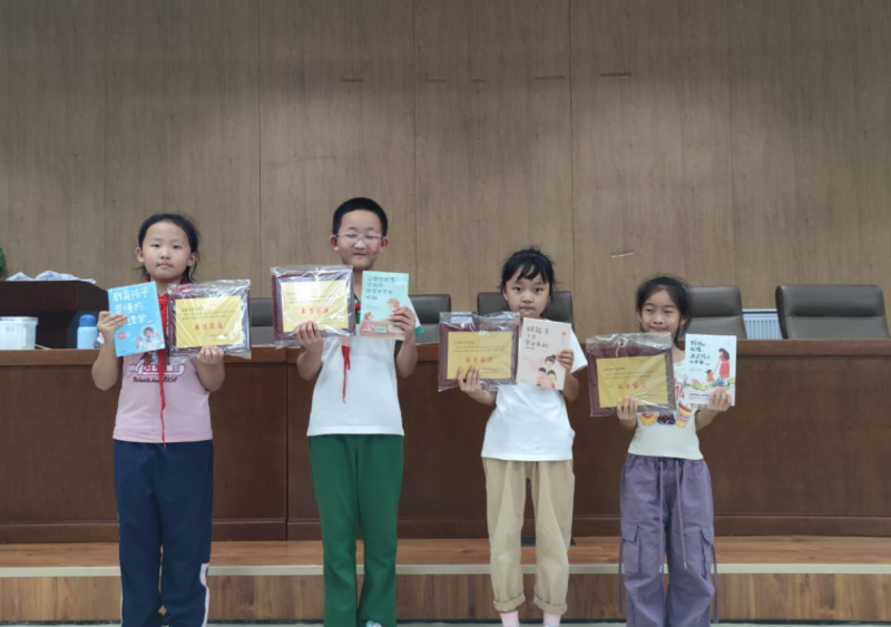 各学年通过思维导图、手抄报等形式总结阅读成果,班级展示读书感悟,形成互学氛围。学期末学校考核展示整本书阅读情况,为优秀学生赠书并颁“阅读小硕士”“阅读小博士”奖状,为出色班级颁“书香班级”奖状。