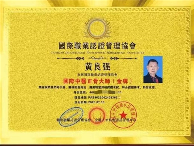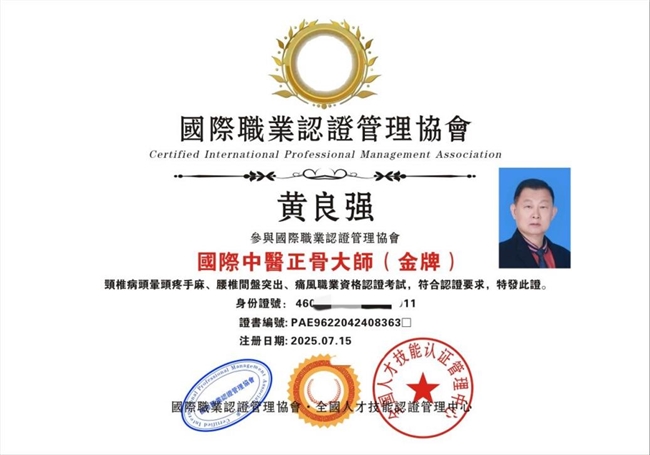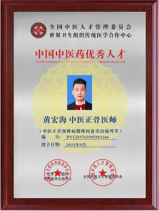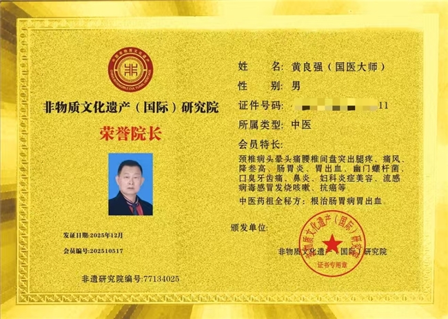 为全面推动大健康产业发展,响应习近平总书记“没有全民健康,就没有全面小康 ”和“要倡导健康文明的生活方式,树立大卫生、大健康的观念,把以治病为中心转变为以人民健康为中心,建立健全健康教育体系,提升全民健康素养。 ”以及“要秉持人类卫生健康共同体理念,推动构建人类命运共同体 ”的号召。为深入挖掘临床一线及基层中医药服务能力建设中涌现出的先进典型,弘扬“大医精诚 ”精神,讲好中医故事,传递中医正能量,使百姓更加爱中医、信中医、受惠于中医。迎国庆特别报道国际权威中医正骨治疗,颈椎病、头晕、头疼、胸闷、肩围炎、腰椎间盘突出、坐骨神经疼、痛风等医学专家——黄良强。