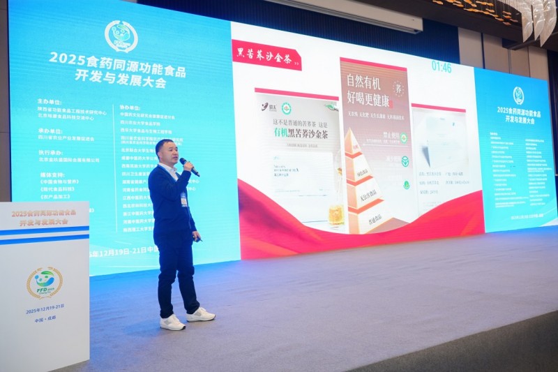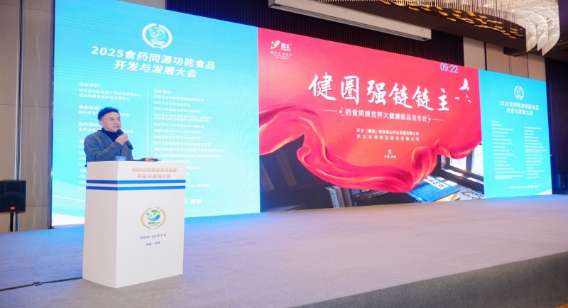 岁末蓉城,嘉宾云集。2025年12月19-21日,以“融合传统智慧与科技创新,推动营养健康产业高质量发展”为主题的2025食药同源功能食品开发与发展大会在成都盛大举行,环太(集团)环太生物科技股份有限公司总经理陈剑雄在大会中隆重发布食药同源苦荞大健康新品。