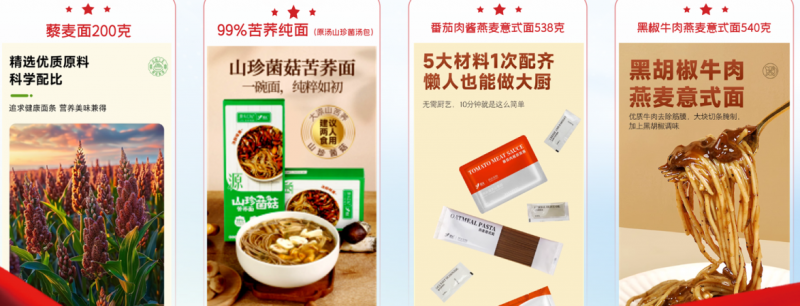 同时,环太开发高原物产青稞、藜麦、燕麦同样通过挤压糊化工艺,进行科学配比,形成意式面。环太也为方便消费者,配以料包。带山珍菌汤包的免煮可泡的99%苦荞纯面;番茄肉酱味的燕麦意式面;黑椒牛肉燕麦意式面,满足各式消费者。隆重推出苦荞主食——面系列。