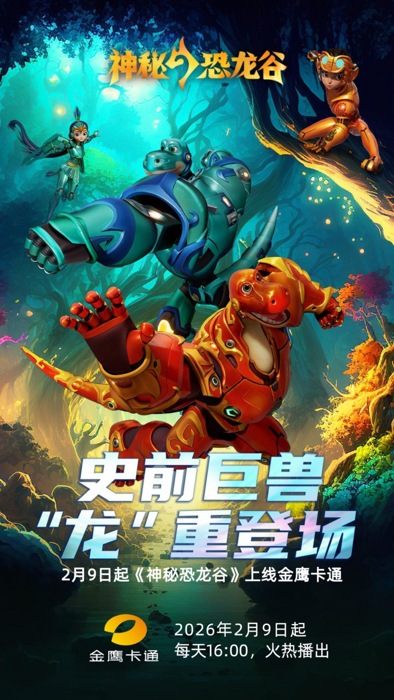 2月9日起,《神秘恐龙谷》在金鹰卡通卫视邀您一同加入阿纳鲁战队,解锁千古谜题,为守护地球而战!